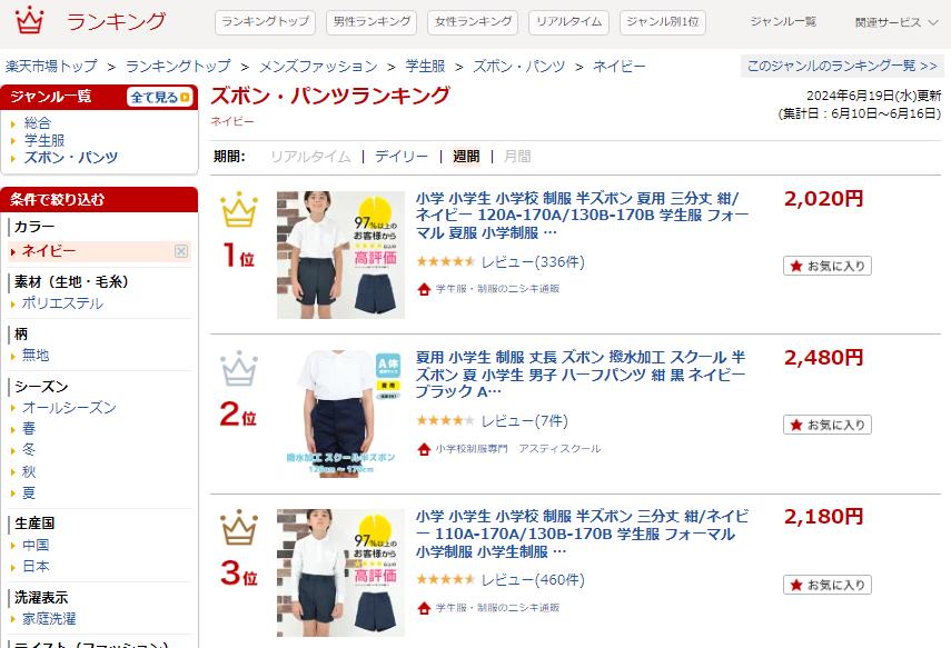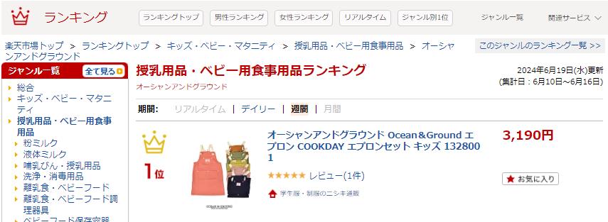 楽天の週間ランキングです。