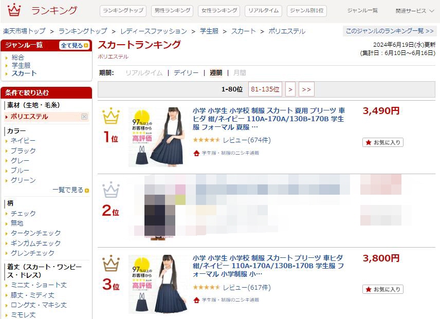 楽天市場トップ > ランキングトップ > レディースファッション > 学生服 > スカート > ポリエステル