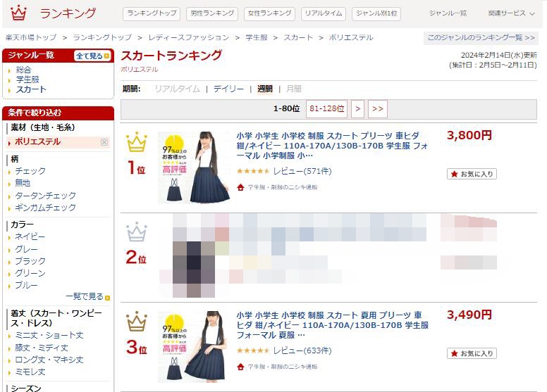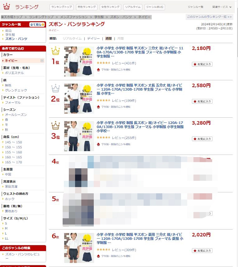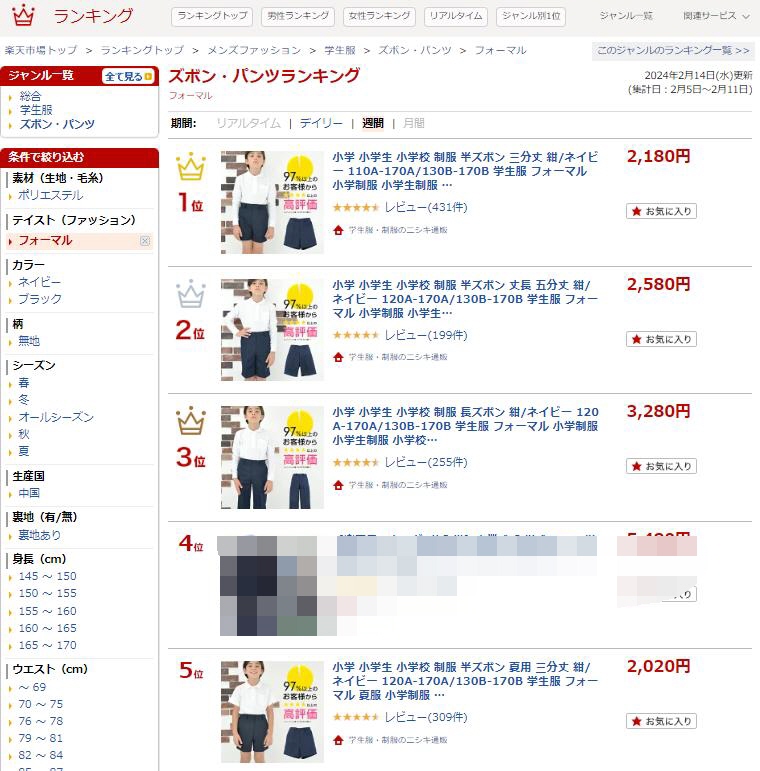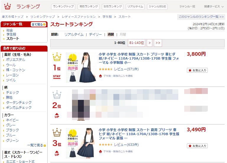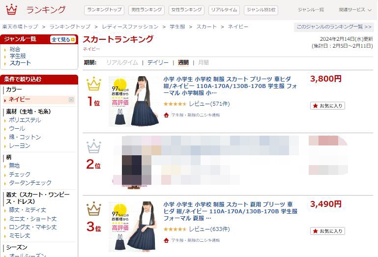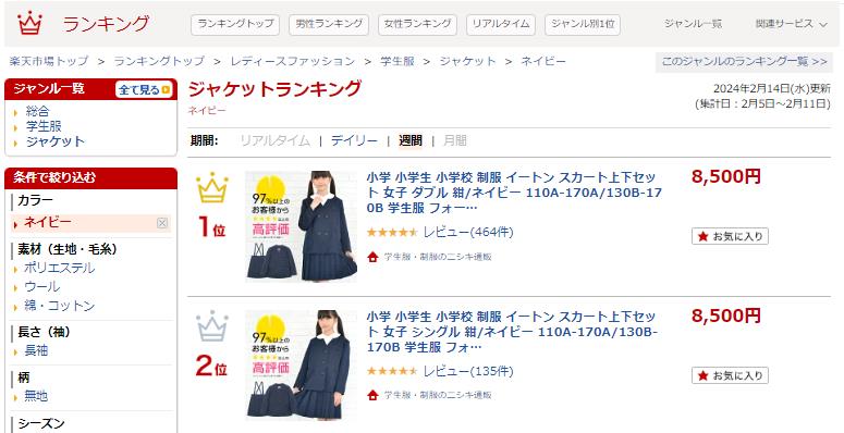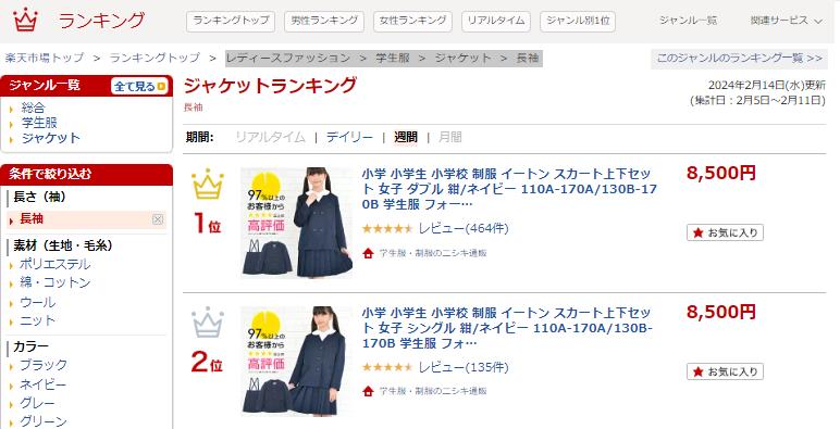 株式会社ニシキの製品が楽天週間ランキングで1位に輝きましたので、記録としてアップします。「学生服・制服のニシキ通販」