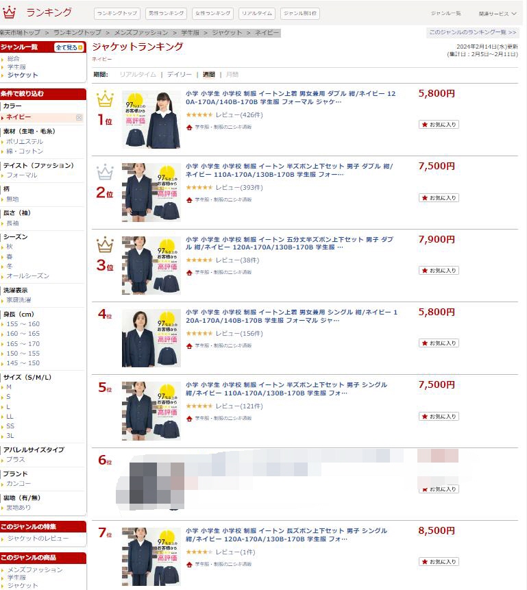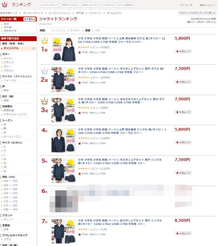 1位、2位、3位、4位、5位、7位とニシキの学生服商品がランクインしました。