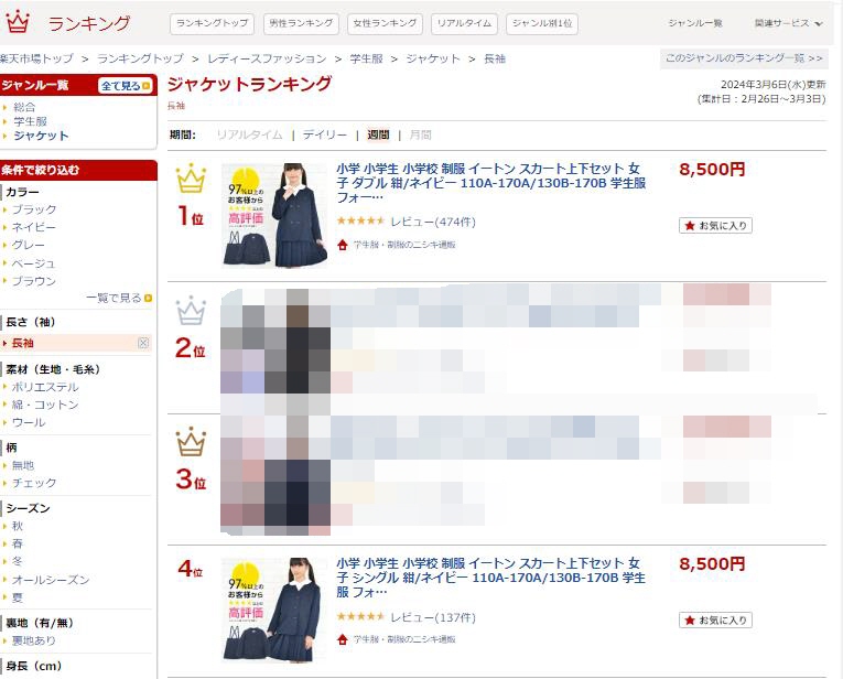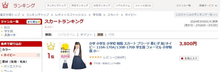 株式会社ニシキの製品が楽天週間ランキングで1位となりましたので、記録としてアップします。「学生服・制服のニシキ通販」