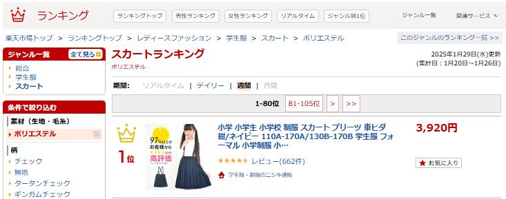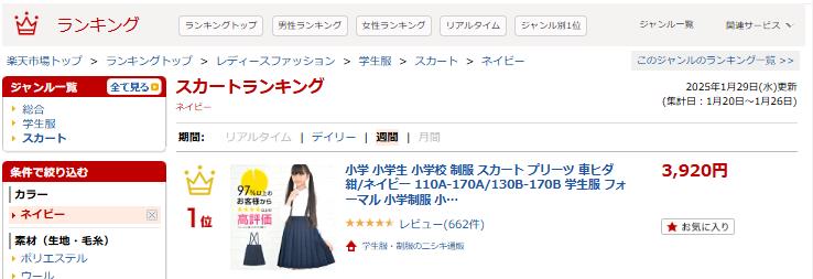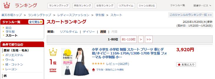 楽天市場トップ > ランキングトップ > レディースファッション > 学生服 > スカート