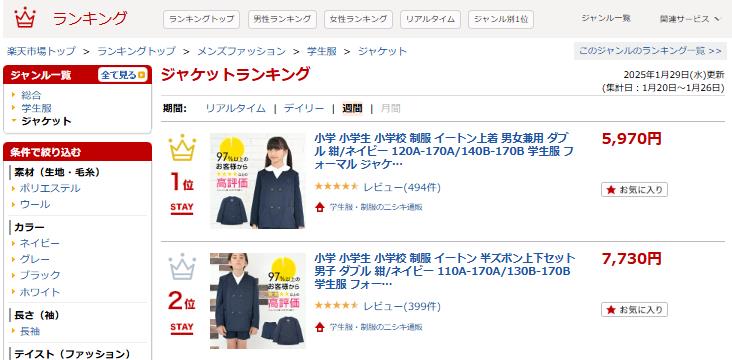 楽天市場トップ > ランキングトップ > メンズファッション > 学生服 > ジャケット