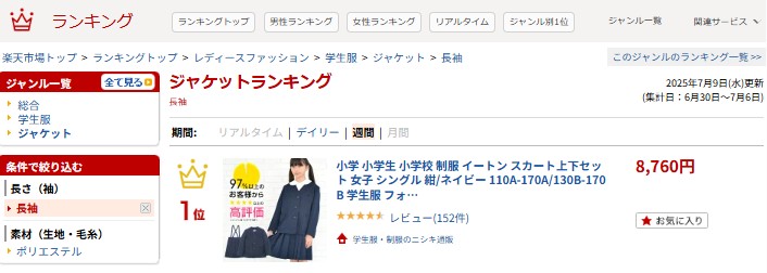 楽天市場トップ > ランキングトップ > レディースファッション > 学生服 > ジャケット > 長袖
