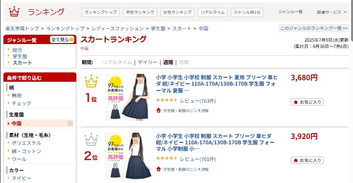 楽天市場トップ > ランキングトップ > レディースファッション > 学生服 > 中国