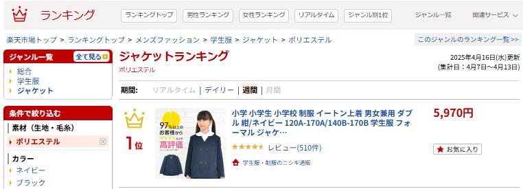この度、弊社が販売しております学生服に関する商品群、具体的には小学生向けのイートン型半ズボン、スカート、半袖ポロシャツ、そして夏用服が楽天ランキングで見事に1位を獲得いたしました。この栄えある成績は、何よりも日頃からご愛顧いただいているお客様の支持によるものです。心から感謝申し上げます。