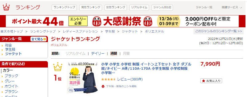 楽天市場トップ > ランキングトップ > レディースファッション > 学生服 > ジャケット > ポリエステル