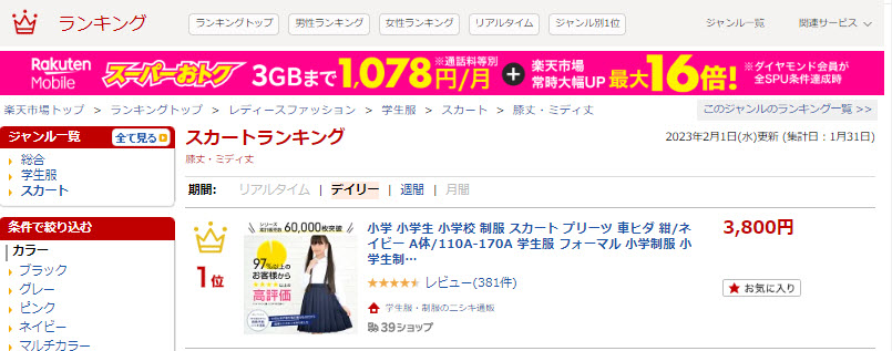 ランキングトップ > レディースファッション > 学生服 > スカート > 春