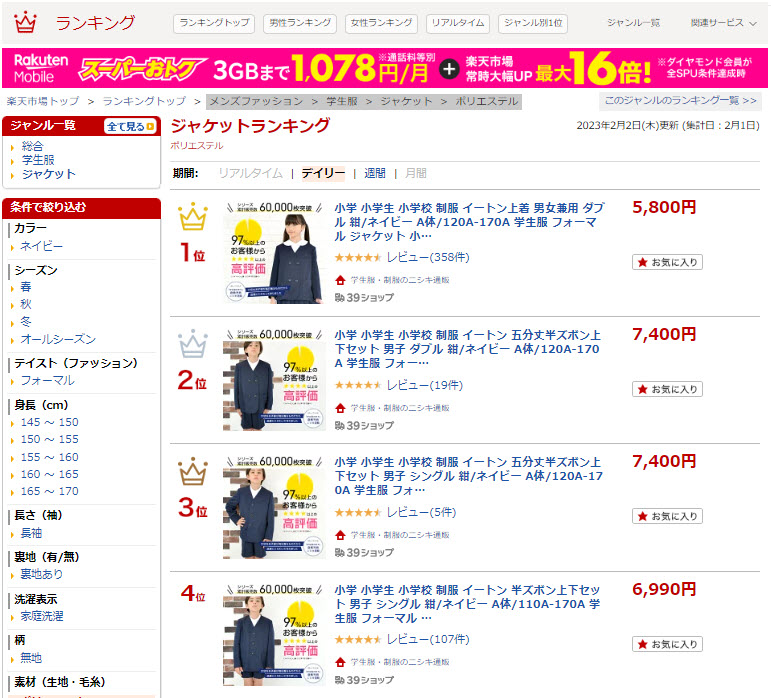 メンズファッション > 学生服 > ジャケット > ポリエステル