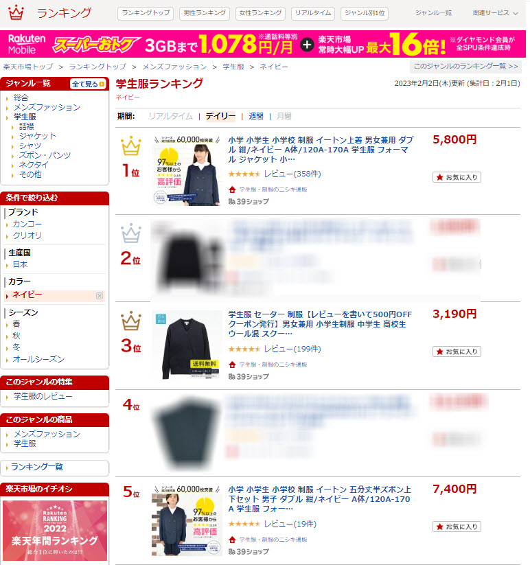 ランキングトップ > メンズファッション > 学生服 > ネイビー