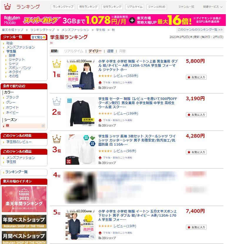 楽天市場トップ > ランキングトップ > メンズファッション > 学生服 > 秋
