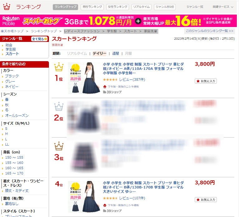 ランキングトップ > レディースファッション > 学生服 > スカート > 春