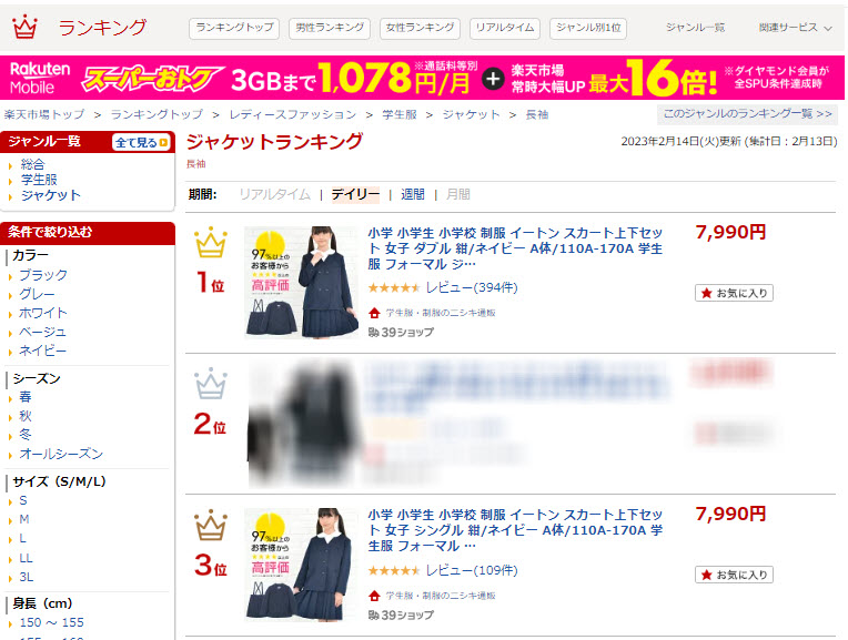 楽天市場トップ > ランキングトップ > レディースファッション > 学生服 > 冬