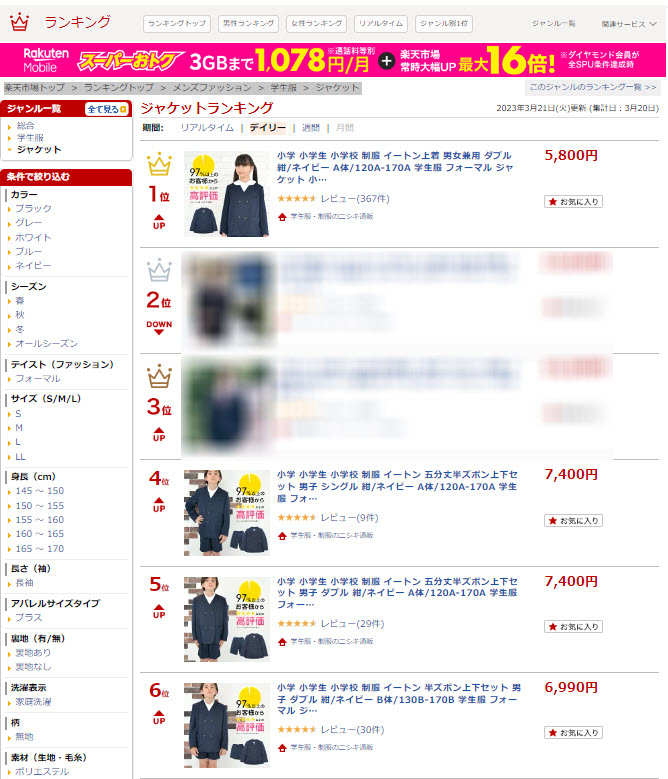 楽天市場トップ > ランキングトップ > メンズファッション > 学生服 > ジャケット
