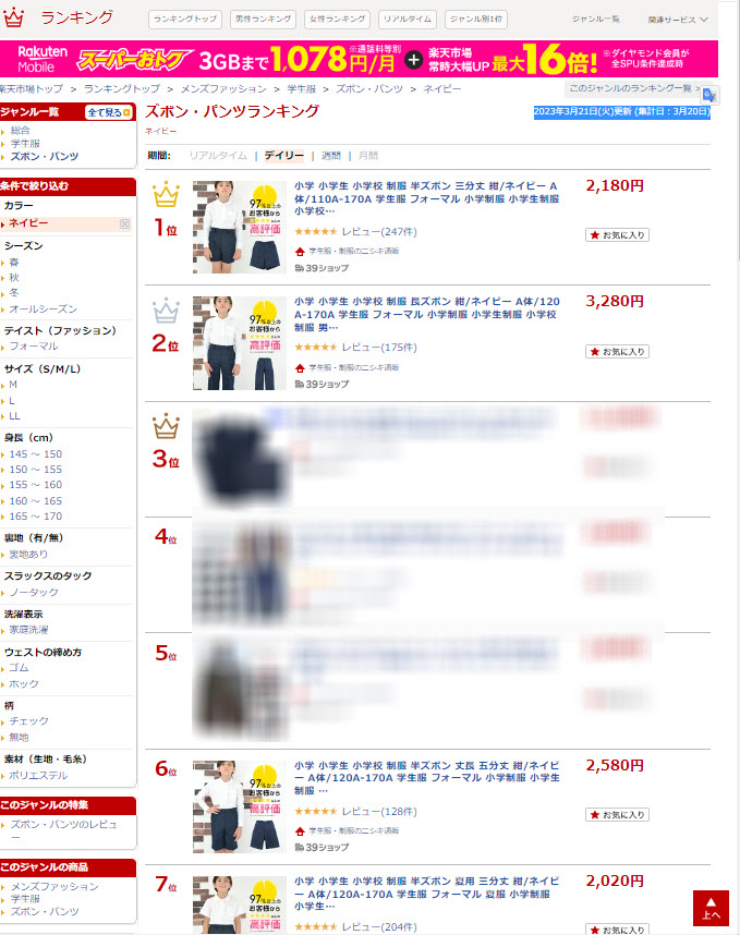 ランキングトップ > メンズファッション > 学生服 > ズボン・パンツ > ネイビー
