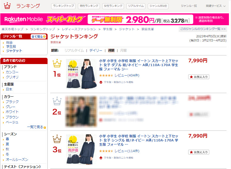 2023年4月5日(水)更新(集計日:3月27日~4月2日)