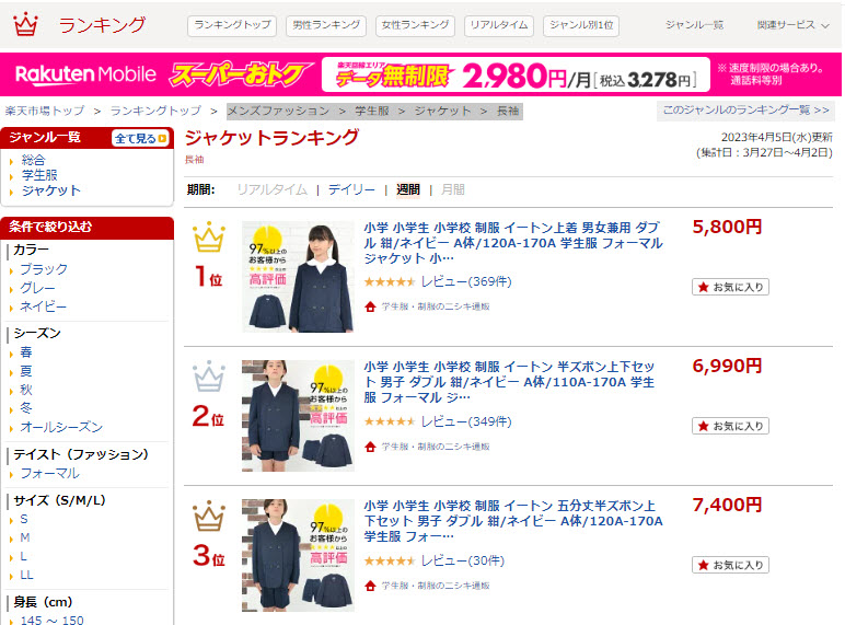 楽天市場トップ > ランキングトップ > メンズファッション > 学生服 > ネイビー