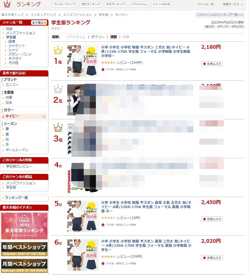 楽天の週間ランキング2023年4月26日発表