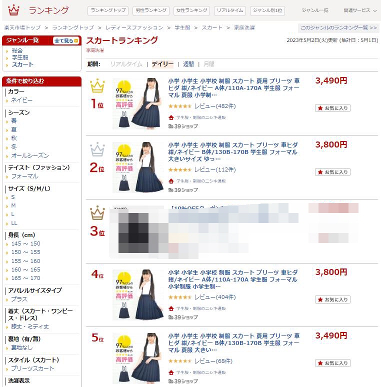 ランキングトップ > レディースファッション > 学生服 > スカート > 家庭洗濯