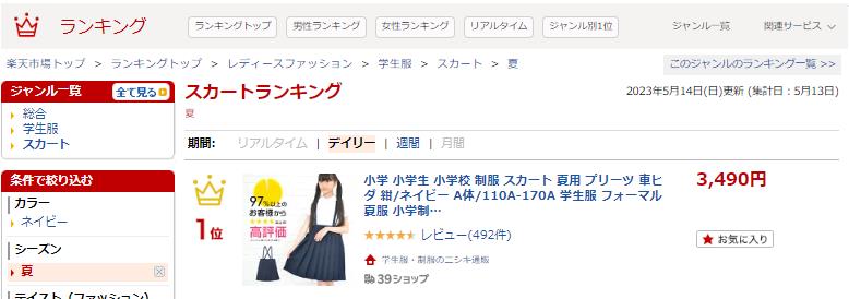 楽天ランキング2023年5月14日(日)更新 (集計日:5月13日)