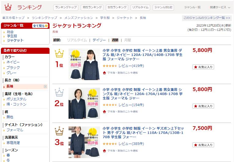 楽天市場トップ > ランキングトップ > レディースファッション > 学生服 > ジャケット > 長袖