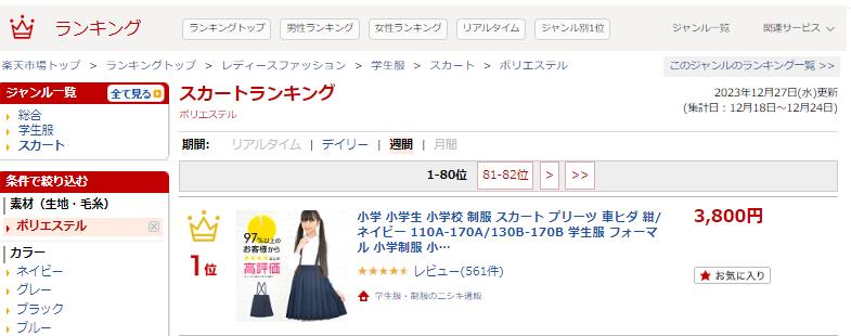 楽天市場トップ > ランキングトップ > レディースファッション > 学生服 > スカート