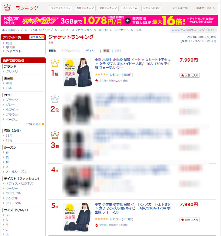 ランキングトップ > レディースファッション > 学生服 > ジャケット > 家庭洗濯